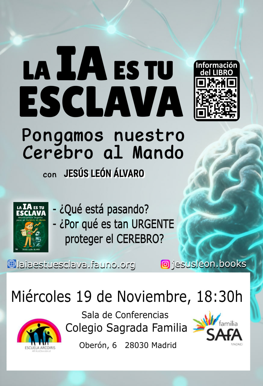 "Desde su formación y experiencia, Jesús León se dirige en LA IA ES TU ESCLAVA a profesores, padres y adolescentes para advertirles por una lado de este riesgo, y para indicarles por otro cómo evitarlo sin renunciar a las ventajas de estas tecnologías. El libro es ameno, útil y motivante por varias razones: el estilo cercano del autor, los muchos consejos prácticos que contiene, las abundantes referencias bibliográficas y el encanto de las ilustraciones. Gracias, Jesús, por proteger a la sociedad con esta obra."